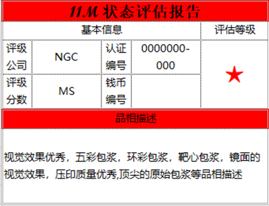 | 服務范圍:普制流通硬幣,普制紀念幣 需要申請狀態評估的錢幣必須是已經貼有11M標簽的評級幣,沒有貼11M標簽的錢幣不能申請狀態評估服務。 | |