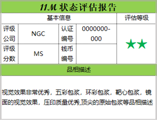 | 綠標 | 原來的評級公正,屬于該級別的中高端品相或者錢幣的狀態出色 |