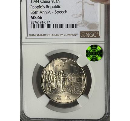 1984年建國三十五周年大典普制幣上海版卷拆原味 NGC MS66狀態漂亮!薦藏綠標!收藏投資配套佳品!拍品編號004.1>拍品品相如圖,拍品圖片全部在自然光下拍攝!出價前請認真看圖,如對拍品有不清楚的地方,出價前請提前聯系看圖或看視頻確認品相和版本直到知悉為止!中拍后此類問題本人可以不予答復!2>中拍快遞默認順豐!一般地區按照標價18(西藏,新疆等邊遠地區25元)!未加運費發普快運費到付且保價費1元!其它方式請提前約定!多拍訂單只算一個運費!如走網站中介付款后請加我微信(13736819388)退回多付運費!請中拍48小時內確認并付款,過期本人有權另行處理!收款后本人將在48小時內將拍品寄出<已經特殊約定如寄存等除外>!暫時不方便收貨的我負責為大家免費保管!3>快遞簽收3日內請自覺完成訂單收貨確認,如果買家無任何回復視為已經收妥!歡迎走網站中介,但中介訂單必須在收購后48小時內完成訂單收貨確認!嚴禁棄拍!否則將進行投訴!謝謝配合!4>為了確保專場品種豐富多樣性,所有拍品不得議價提前節拍。希望各位能夠低價中標!5>美德澳錢友之家目標:致力于成為現代幣泉友收藏,投資的最佳合作伙伴!服務項目:現代幣咨詢,護理,評級(NGC·PMG·ACG·PCGS),再評級(11m·碧海?薦藏),拍賣一條龍服務!辦事原則:公平公正·快速周到·客戶利益最大化!歡迎廣大泉友咨詢惠顧!★