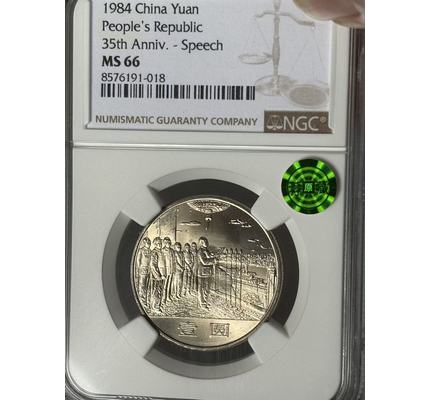 1984年建國三十五周年大典普制幣上海版卷拆原味 NGC MS66狀態漂亮!薦藏綠標!收藏投資配套佳品!拍品編號005.1>拍品品相如圖,拍品圖片全部在自然光下拍攝!出價前請認真看圖,如對拍品有不清楚的地方,出價前請提前聯系看圖或看視頻確認品相和版本直到知悉為止!中拍后此類問題本人可以不予答復!2>中拍快遞默認順豐!一般地區按照標價18(西藏,新疆等邊遠地區25元)!未加運費發普快運費到付且保價費1元!其它方式請提前約定!多拍訂單只算一個運費!如走網站中介付款后請加我微信(13736819388)退回多付運費!請中拍48小時內確認并付款,過期本人有權另行處理!收款后本人將在48小時內將拍品寄出<已經特殊約定如寄存等除外>!暫時不方便收貨的我負責為大家免費保管!3>快遞簽收3日內請自覺完成訂單收貨確認,如果買家無任何回復視為已經收妥!歡迎走網站中介,但中介訂單必須在收購后48小時內完成訂單收貨確認!嚴禁棄拍!否則將進行投訴!謝謝配合!4>為了確保專場品種豐富多樣性,所有拍品不得議價提前節拍。希望各位能夠低價中標!5>美德澳錢友之家目標:致力于成為現代幣泉友收藏,投資的最佳合作伙伴!服務項目:現代幣咨詢,護理,評級(NGC·PMG·ACG·PCGS),再評級(11m·碧海?薦藏),拍賣一條龍服務!辦事原則:公平公正·快速周到·客戶利益最大化!歡迎廣大泉友咨詢惠顧!★