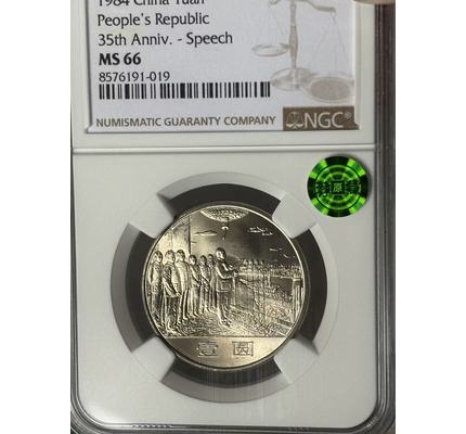 1984年建國三十五周年大典普制幣上海版卷拆原味 NGC MS66狀態漂亮!薦藏綠標!收藏投資配套佳品!拍品編號006.1>拍品品相如圖,拍品圖片全部在自然光下拍攝!出價前請認真看圖,如對拍品有不清楚的地方,出價前請提前聯系看圖或看視頻確認品相和版本直到知悉為止!中拍后此類問題本人可以不予答復!2>中拍快遞默認順豐!一般地區按照標價18(西藏,新疆等邊遠地區25元)!未加運費發普快運費到付且保價費1元!其它方式請提前約定!多拍訂單只算一個運費!如走網站中介付款后請加我微信(13736819388)退回多付運費!請中拍48小時內確認并付款,過期本人有權另行處理!收款后本人將在48小時內將拍品寄出<已經特殊約定如寄存等除外>!暫時不方便收貨的我負責為大家免費保管!3>快遞簽收3日內請自覺完成訂單收貨確認,如果買家無任何回復視為已經收妥!歡迎走網站中介,但中介訂單必須在收購后48小時內完成訂單收貨確認!嚴禁棄拍!否則將進行投訴!謝謝配合!4>為了確保專場品種豐富多樣性,所有拍品不得議價提前節拍。希望各位能夠低價中標!5>美德澳錢友之家目標:致力于成為現代幣泉友收藏,投資的最佳合作伙伴!服務項目:現代幣咨詢,護理,評級(NGC·PMG·ACG·PCGS),再評級(11m·碧海?薦藏),拍賣一條龍服務!辦事原則:公平公正·快速周到·客戶利益最大化!歡迎廣大泉友咨詢惠顧!★