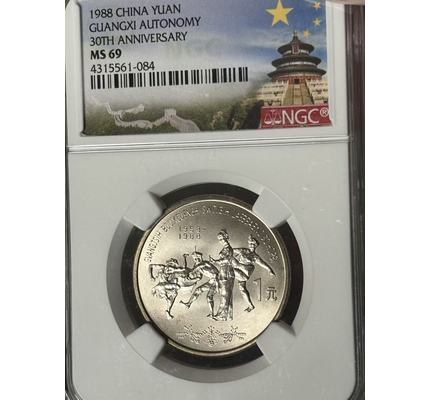 1988年廣西普制幣NGC MS69十分難得的冠軍分狀態漂亮!數據庫25枚!收藏投資配套大精品!拍品編號053.
