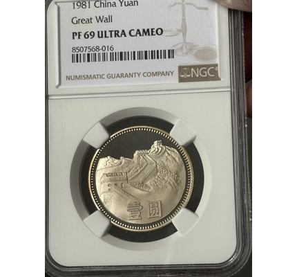 1981年精制長城1元十分少見高鏡面雪山版超重噴砂 NGC PF69UC狀態相當漂亮!長城面狀態極其出色!收藏投資配套大精品!拍品編號133.1>拍品品相如圖,拍品圖片全部在自然光下拍攝!出價前請認真看圖,如對拍品有不清楚的地方,出價前請提前聯系看圖或看視頻確認品相和版本直到知悉為止!中拍后此類問題本人可以不予答復!2>中拍快遞默認順豐!一般地區按照標價18(西藏,新疆等邊遠地區25元)!未加運費發普快運費到付且保價費1元!其它方式請提前約定!多拍訂單只算一個運費!如走網站中介付款后請加我微信(13736819388)退回多付運費!請中拍48小時內確認并付款,過期本人有權另行處理!收款后本人將在48小時內將拍品寄出<已經特殊約定如寄存等除外>!暫時不方便收貨的我負責為大家免費保管!3>快遞簽收3日內請自覺完成訂單收貨確認,如果買家無任何回復視為已經收妥!歡迎走網站中介,但中介訂單必須在收購后48小時內完成訂單收貨確認!嚴禁棄拍!否則將進行投訴!謝謝配合!4>為了確保專場品種豐富多樣性,所有拍品不得議價提前節拍。希望各位能夠低價中標!5>美德澳錢友之家目標:致力于成為現代幣泉友收藏,投資的最佳合作伙伴!服務項目:現代幣咨詢,護理,評級(NGC·PMG·ACG·PCGS),再評級(11m·碧海?薦藏),拍賣一條龍服務!辦事原則:公平公正·快速周到·客戶利益最大化!歡迎廣大泉友咨詢惠顧!★