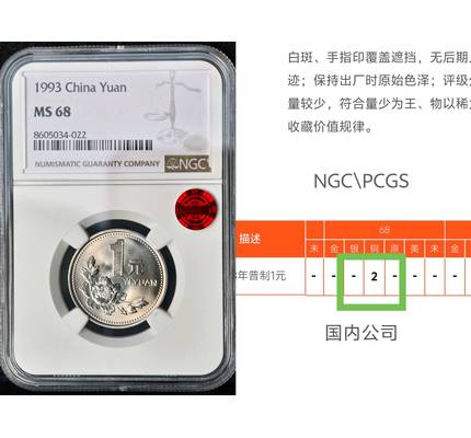 1993年牡丹一元68分,薦藏銅標,雪花底板,難出高分品種,NGC冠軍分,數量只有20枚,且大多都是養護的,無養護很難得!薦藏銅標目前只有2枚,都在這一批里,牡丹小精品!(無薦藏保護殼)