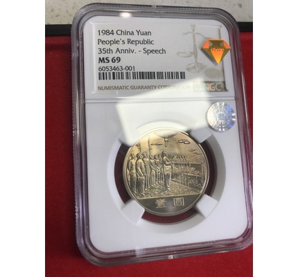 描述:1984年大典半精制幣上海版 NGC MS69(薦藏銀標+碧海金鉆),漂亮月牙彩包漿,收藏級品質