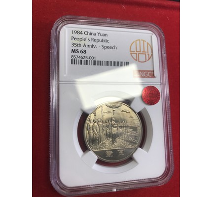 描述:1984年大典半精制幣上海版 NGC MS68(原狀態 薦藏銅標),背面類精制(鏡面噴砂,高精效果)
