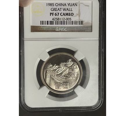 1985年精制長城1元稀缺老標 NGC PF67CA稀少帶后綴狀態漂亮!發行量4825套!收藏投資配套精品!拍品編號231.1>拍品品相如圖,拍品圖片全部在自然光下拍攝!出價前請認真看圖,如對拍品有不清楚的地方,出價前請提前聯系看圖或看視頻確認品相和版本直到知悉為止!中拍后此類問題本人可以不予答復!2>中拍快遞默認順豐!一般地區按照標價18(西藏,新疆等邊遠地區25元)!未加運費發普快運費到付且保價費1元!其它方式請提前約定!多拍訂單只算一個運費!如走網站中介付款后請加我微信(13736819388)退回多付運費!請中拍48小時內確認并付款,過期本人有權另行處理!收款后本人將在48小時內將拍品寄出<已經特殊約定如寄存等除外>!暫時不方便收貨的我負責為大家免費保管!3>快遞簽收3日內請自覺完成訂單收貨確認,如果買家無任何回復視為已經收妥!歡迎走網站中介,但中介訂單必須在收購后48小時內完成訂單收貨確認!嚴禁棄拍!否則將進行投訴!謝謝配合!4>為了確保專場品種豐富多樣性,所有拍品不得議價提前節拍。希望各位能夠低價中標!5>美德澳錢友之家目標:致力于成為現代幣泉友收藏,投資的最佳合作伙伴!服務項目:現代幣咨詢,護理,評級(NGC·PMG·ACG·PCGS),再評級(11m·碧海?薦藏),拍賣一條龍服務!辦事原則:公平公正·快速周到·客戶利益最大化!歡迎廣大泉友咨詢惠顧!★