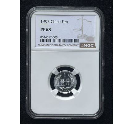 四小天王硬分幣1992年精制1分 NGC PF68難得高分狀態漂亮!收藏投資配套精品!拍品編號002.1>拍品品相如圖,拍品圖片全部在自然光下拍攝!出價前請認真看圖,如對拍品有不清楚的地方,出價前請提前聯系看圖或看視頻確認品相和版本直到知悉為止!中拍后此類問題本人可以不予答復!2>中拍快遞默認順豐!一般地區按照標價18(西藏,新疆等邊遠地區25元)!未加運費發普快運費到付且保價費1元!其它方式請提前約定!多拍訂單只算一個運費!如走網站中介付款后請加我微信(13736819388)退回多付運費!請中拍48小時內確認并付款,過期本人有權另行處理!收款后本人將在48小時內將拍品寄出<已經特殊約定如寄存等除外>!暫時不方便收貨的我負責為大家免費保管!3>快遞簽收3日內請自覺完成訂單收貨確認,如果買家無任何回復視為已經收妥!歡迎走網站中介,但中介訂單必須在收購后48小時內完成訂單收貨確認!嚴禁棄拍!否則將進行投訴!謝謝配合!4>為了確保專場品種豐富多樣性,所有拍品不得議價提前節拍。希望各位能夠低價中標!5>美德澳錢友之家目標:致力于成為現代幣泉友收藏,投資的最佳合作伙伴!服務項目:現代幣咨詢,護理,評級(NGC·PMG·ACG·PCGS),再評級(11m·碧海?薦藏),拍賣一條龍服務!辦事原則:公平公正·快速周到·客戶利益最大化!歡迎廣大泉友咨詢惠顧!★