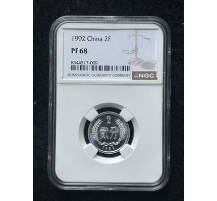 四小天王硬分幣1992年精制2分 NGC PF68難得高分狀態漂亮!收藏投資配套精品!拍品編號004.1>拍品品相如圖,拍品圖片全部在自然光下拍攝!出價前請認真看圖,如對拍品有不清楚的地方,出價前請提前聯系看圖或看視頻確認品相和版本直到知悉為止!中拍后此類問題本人可以不予答復!2>中拍快遞默認順豐!一般地區按照標價18(西藏,新疆等邊遠地區25元)!未加運費發普快運費到付且保價費1元!其它方式請提前約定!多拍訂單只算一個運費!如走網站中介付款后請加我微信(13736819388)退回多付運費!請中拍48小時內確認并付款,過期本人有權另行處理!收款后本人將在48小時內將拍品寄出<已經特殊約定如寄存等除外>!暫時不方便收貨的我負責為大家免費保管!3>快遞簽收3日內請自覺完成訂單收貨確認,如果買家無任何回復視為已經收妥!歡迎走網站中介,但中介訂單必須在收購后48小時內完成訂單收貨確認!嚴禁棄拍!否則將進行投訴!謝謝配合!4>為了確保專場品種豐富多樣性,所有拍品不得議價提前節拍。希望各位能夠低價中標!5>美德澳錢友之家目標:致力于成為現代幣泉友收藏,投資的最佳合作伙伴!服務項目:現代幣咨詢,護理,評級(NGC·PMG·ACG·PCGS),再評級(11m·碧海?薦藏),拍賣一條龍服務!辦事原則:公平公正·快速周到·客戶利益最大化!歡迎廣大泉友咨詢惠顧!★