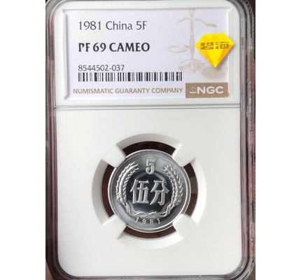 競拍物品: 【精制長城幣專場拍賣】1981年精制5分 NGC PF69CA(碧海金鉆)