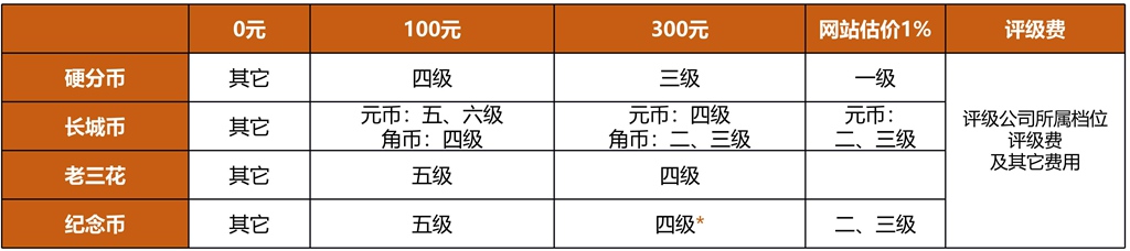 由于網(wǎng)站增加了原包裝拆封、錢幣原狀態(tài)認(rèn)定、評(píng)級(jí)甄選、數(shù)據(jù)錄入與存儲(chǔ)、系統(tǒng)開(kāi)發(fā)維護(hù)等工作,所以除了按照評(píng)級(jí)公司標(biāo)準(zhǔn)收費(fèi)之外,對(duì)于珍稀錢幣需要收取原狀態(tài)評(píng)估費(fèi)。
