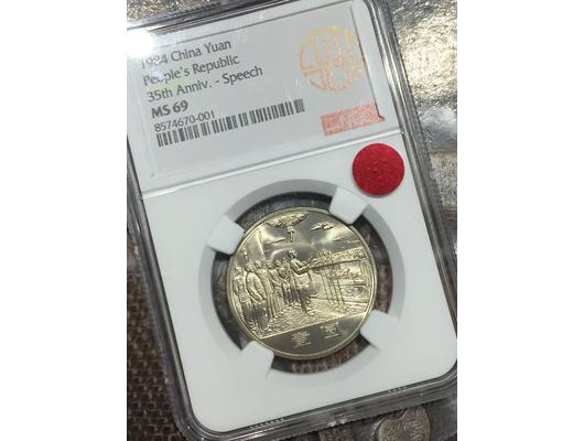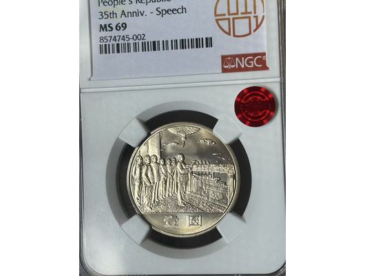 【美德澳專場拍賣】1984年建國三十五周年大典半精制幣上海版 NGC MS69(網站原狀態+薦藏銅標)