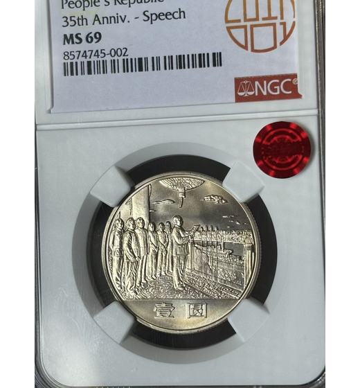 1984年建國三十五周年大典半精制幣上海版 NGC MS69(原狀態/薦藏銅標)