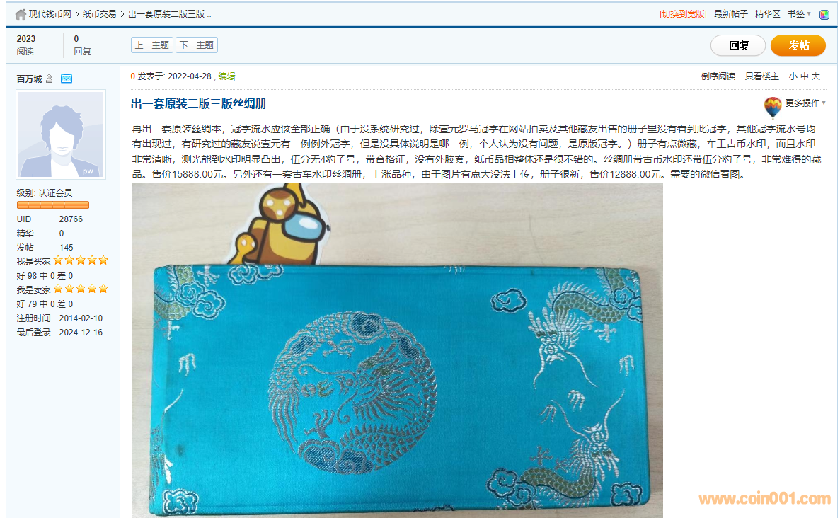 其實這貼可以整理一下,絲綢本、牛皮本的冠號分析總覽表了。最近海外回流的這貨不少,但是對于收藏者來說缺少一定的參考作用,就是李兄所說,有些新冠號的發現,不代表他不是原裝的。有些拆包就有合格證有些沒有合格證,不代表就不合格。
