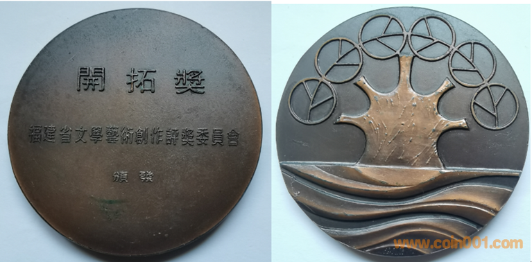 1989年上幣制造,紫銅鍍銀普制70MM。正面為主題文字,反面(單項獎)和平鴿懷抱少女、(集體獎)和平鴿。