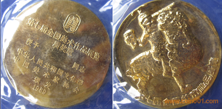 1990年上幣制造。紫銅鍍金普制(第一名)。紫銅鍍銀普制(第二名),紫銅上色(第三名以下)。三種版別均為60MM。正面為主題文字,反面為長城。